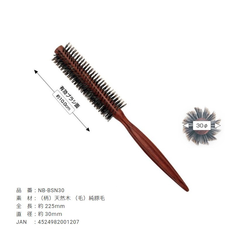 日本NBAA原木豬鬃毛圓梳NB-BSN3